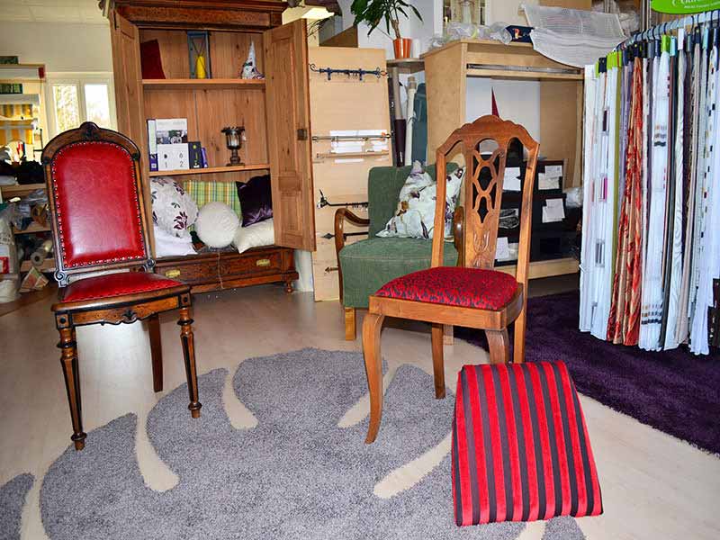 In unserer Polsterwerkstatt führen wir anspruchsvolle Polsterarbeiten aus. Ob Naturleder, Möbelstoffe (verschiedenster Qualitäten). Gerne beraten wir Sie. |